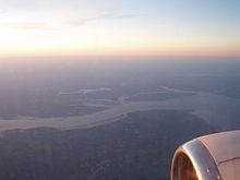 The appellation Greater Thames Estuary[5] applies to the coast and the low-lying lands bordering the estuary itself. These are characterised by the presence of mudflats, low-lying open beaches and salt marshes, namely the North Kent Marshes and the Essex Marshes. Man-made embankments are backed by reclaimed wetland grazing areas, but rising sea levels may make it necessary to temporarily flood some of that land in places at spring tides, to take the pressure off the defences.