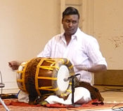 A thavil (Tamil:தவில்) or tavil is a barrel-shaped percussion instrument from Tamil Nadu. It is used in temple, folk and Carnatic music, often accompanying the nadaswaram. The thavil and the nadaswaram are essential components of traditional festivals and ceremonies in South India.