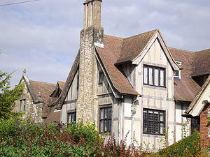 It is an irregular five bay, two and three storey house built in 1871-2 by the Rev George Faithfull in the Victorian Gothic style, reusing material from the 1621 rectory which was demolished at this time.[1] In the 1880s it was the residence of Colonel Walter George Stirling, a Baronet who had a pedigree herd of Jersey cattle.[2][3] Successive tenants altered the house; in 1911 (semi-timbered work) and 1930 (brick range) when Colonel H.V. Ravenscroft added a billiard room and ballroom designed by John Leopold Denman.[1]