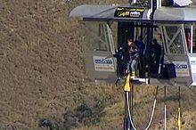 In this leg's Roadblock, one team member had to bungee jump 134 metres (440 ft) over Nevis Valley, reputedly the world's wildest bungee jump. They only had 2 minutes after they step on the platform to do so, or forfeit their turn. After they were successfully done with the jump, the bungee instructor would give them their next clue. This task was later revisited on Season 4 as a Switchback.