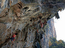 In this leg's Roadblock, one team member had to climb up the face of Railay East 123 Wall in order to retrieve the next clue from the top.