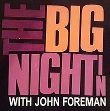 The Big Night In with John Foreman was an Australian variety show airing on Network Ten and Ovation. It premiered on 3 December 2005 and concluded its first series 6 January 2006 then returned for another season in October 2006.[1]