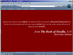 The Book of Mozilla is a computer Easter egg found in the Netscape and Mozilla series of web browsers.[1][2] It is viewed by directing the browser to about:mozilla.[3][4][5]