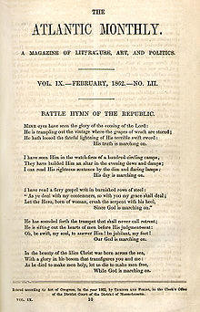 - ^ Howe, Julia Ward (February 1862). "The Battle Hymn of the Republic". The Atlantic Monthly. 9 (52): 10. Retrieved April 26, 2015.
