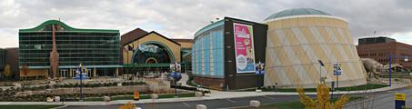 In 1996, a 310-seat large-format theater called the CineDome was constructed adjacent to the museum. In 2004, the museum added a 950-space parking garage and the CineDome was converted to Dinosphere, which is built within and around the former CineDome. The Welcome Center was expanded again in 2009 increasing the total size of the museum to 472,900 square feet (43,930 m2).[9]