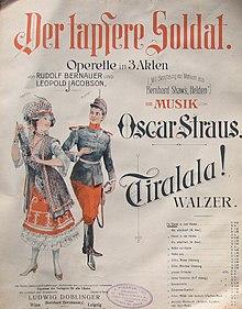 The Chocolate Soldier (German: Der tapfere Soldat [The courageous soldier] or Der Praliné-Soldat) is an operetta composed in 1908 by Oscar Straus based on George Bernard Shaw's 1894 play, Arms and the Man. The German language libretto is by Rudolf Bernauer and Leopold Jacobson.[1][2] It premiered on 14 November 1908 at the Theater an der Wien.