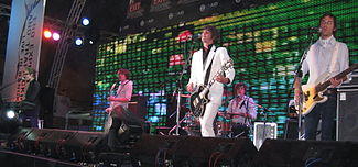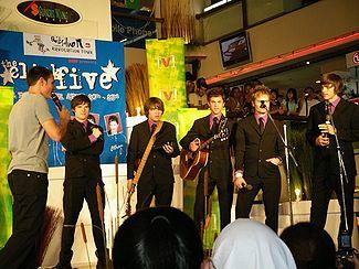 The band was initially known for its power pop songs and for its Mod-based public image,[4] involving sharp-looking suits and ties coupled with moptop haircuts, which is deliberately reminiscent of The Beatles or The Dave Clark Five.[5] They prefer to classify their music as "new school power pop".[6] However, they have also been classified as pop punk and teen pop.[7][8] They achieved significant commercial success with their first album in the US and their second release met with extreme popularity in Asian countries such as Cambodia and the Philippines.[9] In total, the band has sold two million albums worldwide and have created eight number one singles in seven different nations.[10] The band starred in the 2007 film Taking Five with Alona Tal and Daniella Monet and Christy Carlson Romano.