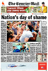 Front page of The Courier-Mail, 25 July 2008, with the aftermath of the Liberal National Party merger headlining. ![]() | |