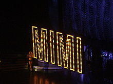 Sixteen months after the release of the album, Carey announced her first headlining tour in three years, named The Adventures of Mimi: The Voice, The Hits, The Tour after a "Carey-centric fan's" music diary.[79][80] Beginning on July 22, 2006 and ending on October 28, the tour spanned forty stops, with thirty-two in the US and Canada, two in Africa, and six in Japan.[81][82] The tour featured the singer's long-time friend Randy Jackson as the musical director.[83][84] In an interview for the Associated Press, Carey described the tour's direction, as well as the music she would perform: