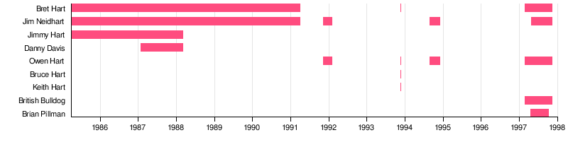 | Members | Bret Hart (leader) Jim Neidhart Owen Hart The British Bulldog Brian Pillman |