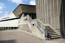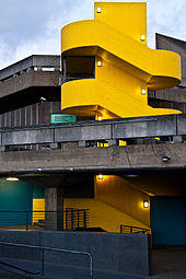 The Hayward Gallery was built by Higgs and Hill[1] and opened on 9 July 1968. Its massing and extensive use of exposed concrete construction are features typical of Brutalist architecture. The initial concept was designed, with the Queen Elizabeth Hall and Purcell Room, as an addition to the Southbank Centre arts complex by team leader Norman Engleback, assisted by John Attenborough, Ron Herron and Warren Chalk,[2] two members of the later founded group Archigram, of the Department of Architecture and Civic Design of the Greater London Council. Warren Chalk then developed the site plan and connective first floor walkways, while Ron Herron worked on the acoustics for the Queen Elizabeth Hall. Alan Waterhouse, then Dennis Crompton, worked on the designs for the Hayward. The building is named after Sir Isaac Hayward, a former leader of the London County Council, the GLC's predecessor.[3] Joanna Drew was the founding director; Ralph Rugoff has been director since 2006.