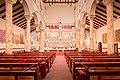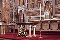 Internally, the visitor will find majestic Victorian carving. The High Altar is made of marble, finely carved and life size images of Our Lady, St Stephen, St Patrick, St Peter, St John, St Hilda, St Augustine and St Joseph. Central to this above the tabernacle is Christ bearing the Sacred Heart. The Stations of the Cross were painted in 1994 by artist Norman Adams and are in a striking expressionist style.