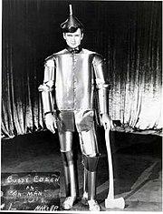 Ray Bolger was originally cast as the Tin Man and Buddy Ebsen was to play the Scarecrow.[20] Bolger, however, longed to play the Scarecrow, as his childhood idol Fred Stone had done on stage in 1902; with that very performance, Stone had inspired him to become a vaudevillian in the first place. Now unhappy with his role as the Tin Man (reportedly claiming, "I'm not a tin performer; I'm fluid"), Bolger convinced producer Mervyn LeRoy to recast him in the part he so desired.[25] Ebsen did not object; after going over the basics of the Scarecrow's distinctive gait with Bolger (as a professional dancer, Ebsen had been cast because the studio was confident he would be up to the task of replicating the famous "wobbly-walk" of Stone's Scarecrow), he recorded all of his songs, went through all the rehearsals as the Tin Man and began filming with the rest of the cast.[26]