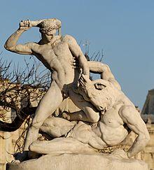 In these lines, Virgil taunts the Minotaur in order to distract him, and reminds the Minotaur that he was killed by Theseus the Duke of Athens with the help of the monster's half-sister Ariadne. The Minotaur is the first infernal guardian whom Virgil and Dante encounter within the walls of Dis.[25] The Minotaur seems to represent the entire zone of Violence, much as Geryon represents Fraud in Canto XVI, and serves a similar role as gatekeeper for the entire seventh Circle.[26]
