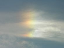 Skeptical investigator Joe Nickell wrote that the "dancing sun" effects reported at Fátima were "a combination of factors, including optical effects and meteorological phenomena, such as the sun being seen through thin clouds, causing it to appear as a silver disc. Other possibilities include an alteration in the density of the passing clouds, causing the sun’s image to alternately brighten and dim and so seem to advance and recede, and dust or moisture droplets in the atmosphere refracting the sunlight and thus imparting a variety of colors". Nickell also suggests that unusual visual effects could have resulted from temporary retinal distortion caused by staring at the intense light of the Sun,[6] or have been caused by a sundog, a relatively common atmospheric optical phenomenon.[56][12] Nickell also highlights the psychological suggestibility of the witnesses, noting that devout spectators often come to locations where Marian apparitions have been reported "fully expecting some miraculous event", such as the 1988 Lubbock apparition of Mary in Texas, the Mother Cabrini Shrine near Denver, Colorado, in 1992, and Conyers, Georgia, in the early to mid-1990s.[6]