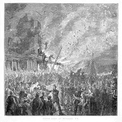 On 8 September 1879, fire broke out in the Cafe Chantant in the lower Octagon. The cafe had a bad reputation and the proprietor William Waters was under threat of arrest. The building was full at the time of the fire, and escape from the building was difficult. In all, a dozen people died in the blaze, including Robert Wilson, editor of the Otago Witness and his family. Waters was later charged with setting fire to the building for insurance purposes.[9] The disaster was the biggest single loss of life in New Zealand due to fire until the destruction of Seacliff Mental Hospital some 63 years later.