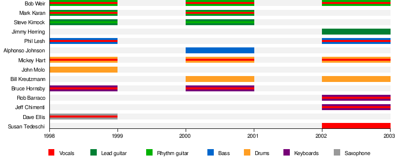 | Past members | Bob Weir Mickey Hart Bruce Hornsby Mark Karan Steve Kimock Phil Lesh John Molo Dave Ellis Bill Kreutzmann Alphonso Johnson Jimmy Herring Rob Barraco Jeff Chimenti Susan Tedeschi |