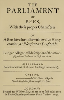 The Parliament of Bees is the best-known of the works of the Elizabethan dramatist John Day. It was probably written sometime between 1608 and 1616, but not published until 1641.