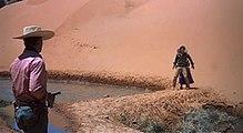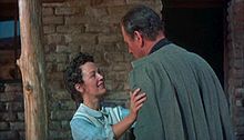 An important plot undercurrent is the obvious mutual attraction between Ethan Edwards and his brother's wife, Martha. Although no dialogue alludes to it, a multitude of visual references to their relationship are seen throughout the film.[39][40][41] Some critics have suggested that this unspoken passion implies that Debbie—who is specifically described as eight years old, as Ethan returns from an eight-year absence—may be Ethan's daughter. Such a situation would add further layers of nuance to Ethan's obsessive search for Debbie, his revulsion at the thought that she might be living as an Indian, and his ultimate decision to bring her home—and then walk away. Beyond the ostensible motivations, it might depict a guilt-ridden father's need to save the daughter he made by cuckolding his brother, then abandoned.[42]