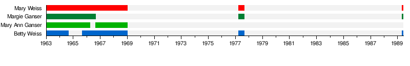 Past members | Mary Weiss Elizabeth "Betty" Weiss Marguerite "Marge" Ganser Mary Ann Ganser |