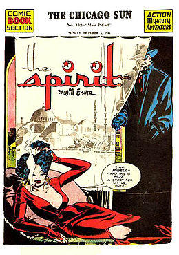 The Spirit is a fictional masked crimefighter created by cartoonist Will Eisner. He first appeared June 2, 1940,[1] as the main feature of a 16-page, tabloid-sized, newsprint comic book insert distributed in the Sunday edition of Register and Tribune Syndicate newspapers; it was ultimately carried by 20 Sunday newspapers, with a combined circulation of five million copies during the 1940s. "The Spirit Section", as the insert was popularly known, continued until October 5, 1952.[1] It generally included two other four-page strips (initially Mr. Mystic and Lady Luck), plus filler material. Eisner, the overall editor, wrote and drew most Spirit entries, with the uncredited assistance of his studio of assistants and collaborators, though with Eisner's singular vision a unifying factor.[2]