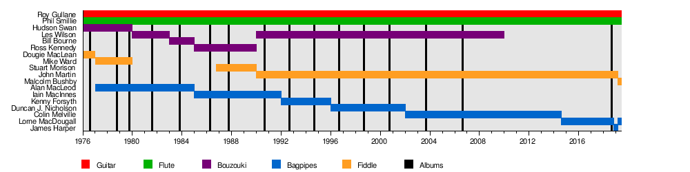 | Past members | John Martin Colin Melville Leslie Wilson Alan MacLeod Bill Bourne Dougie MacLean Duncan J. Nicholson Gordon Duncan Hudson Swan Iain MacInnes Kenny Forsyth Mike Ward Ross Kennedy Stuart Morison John Cassidy Willie Beaton David Shaw Willie Beag Stuart McKay Neil Doherty Jim McGowan |