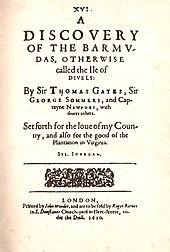 William Strachey's A True Reportory of the Wracke and Redemption of Sir Thomas Gates, Knight, an eyewitness report of the real-life shipwreck of the Sea Venture in 1609 on the island of Bermuda while sailing toward Virginia, is considered a primary source for the opening scene, as well as a few other references in the play to conspiracies and retributions.[19] Although not published until 1625, Strachey's report, one of several describing the incident, is dated 15 July 1610, and it is thought that Shakespeare must have seen it in manuscript sometime during that year. E.K. Chambers identified the True Reportory as Shakespeare's "main authority" for The Tempest.[20] Regarding the influence of Strachey in the play, Kenneth Muir says that although "[t]here is little doubt that Shakespeare had read ... William Strachey's True Reportory" and other accounts, "[t]he extent of the verbal echoes of [the Bermuda] pamphlets has, I think, been exaggerated. There is hardly a shipwreck in history or fiction which does not mention splitting, in which the ship is not lightened of its cargo, in which the passengers do not give themselves up for lost, in which north winds are not sharp, and in which no one gets to shore by clinging to wreckage", and goes on to say that "Strachey's account of the shipwreck is blended with memories of Saint Paul's—in which too not a hair perished—and with Erasmus' colloquy."[21]