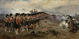 The term is derived from the Thin Red Line, a formation of the 93rd Highland Regiment of Foot of the British Army at the Battle of Balaclava in 1854, in which the Scottish Highlanders stood their ground against a Russian cavalry charge.[2] This action was widely publicized by the press and recreated in artwork, becoming one of the most famous battles of the Crimean War. The name is now used for firefighters today.