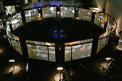 The Navigation Room (1997, exhibition New Image, New Networks) and The Membrane (2001) were created for the Cité des Sciences et de l'Industrie in Paris. The Navigation Room, could be considered as the prototype of the interactive educative exhibition, deeply immersive, with highly personalized visits and content generating a web page dedicated to each visitor. The Membrane (2001) — the core of the exhibition Man Transformed — was a large surface breathing and feeling the presence of the visitors, digesting and distributing information in constant physical dialog with the public. Benayoun defined this as organic design. The Panoramic Tables for the Planet of Visions pavilion for Hanover EXPO2000, directed by François Schuiten, was an innovative application of augmented reality. In 2006, with the architect Christophe Girault, they created War and Peace, the permanent exhibition inside the Arc de Triomphe, Paris, that opened in February 2007. War and Peace questioned the significance of a national monument dedicated to Napoleon's Army. The exhibition was destroyed in fall 2018, during the Yellow vest movement in Paris. After Art Impact (Pompidou Center, Paris, 2000) where he used for the first time VR binoculars to share the experience of watching (the Collective Retinal Memory) Benayoun conceived and directed the exhibition Cosmopolis, Overwriting the City (2005), a large scale art and science immersive installation presented during the French Year in China in Shanghai, Beijing, Chengdu, and Chongqing. This immersive exhibition received in Shanghai up to more than ten thousand visitors per day. This was Maurice Benayoun's first experience in China, and the reception by the public played an important role in later Benayoun's move to Asia.[4] Benayoun initiated in 2005 the series of works Mechanics of Emotions presents the Internet as the world nerve system and world emotions as a possible material for the new metaphoric model of the economy. In this series, Benayoun produced many installations and urban art projects during the 10 years that followed.