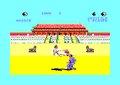 The game control is via joystick or direction keys and a "fire" key. 18 different movements can be made, including jumping kick, roundhouse kick and a variety of punches and kicks, high and low. The game features a variety of backgrounds against which the fighting takes place. After completing a number of progressively harder stages, the player is charged at by a bull in a bonus round. The player must knock the bull out with a single hit. The bonus round mirrors the feats of Mas Oyama, a karate expert who purportedly killed bulls with a single strike. This bonus round was not present in the ZX Spectrum version and some of the early Commodore 64 versions.