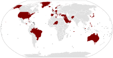 It was originally used for the universal monarchy of the European and American dominions under Emperor Charles V.[4][5][6] The term was then used for the Spanish Empire of Philip II of Spain and successors, in the 16th, 17th and 18th centuries.[7][8] In more recent times, it was used for the British Empire, mainly in the 19th and early 20th centuries, a period in which the British Empire reached a territorial size larger than that of any other empire in history. In the 20th century, the phrase has sometimes been adapted to refer to the global reach of American power.