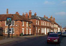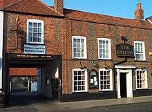 The High Street is completely built up with mainly Victorian edifices in red brick, some in patterned brickwork and some rendered in lime plaster. It is a "Conservation Area". Listed buildings earlier in date are 1, 4, 29, 31, 33, 35, 37, 43–5, 47, 48, 49, 50, 52, 58, 60.[36] Of these, seventeenth-century timber framed buildings are 29, 33, 35 and 52; the others are Georgian or Regency. 29, 31 and 47 are old coaching inns (31 still open as The Falcon). 49 has an unusual Gothick door-case.[37]