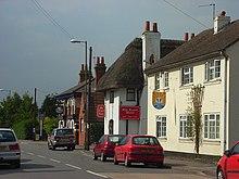 The landscape of the present parish is relatively flat, with expanses of level ground flanking the main road.[19] It is dominated by the built-up area of the village. This is residential north of the bypass, and commercial south of it. North of the village is a golf course, and to the west a few large fields owned by the Englefield Estate.