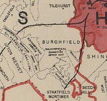 From before 1241 until the 1800s, Theale unusually gave its name to the hundred containing the parishes of Aldermaston, Bradfield, Burghfield, Englefield, Padworth, Purley, Stratfield Mortimer, Sulham, Sulhamstead Bannister, Tidmarsh, Ufton Nervet and Woolhampton.[6] The oddity of this is that the village was not in the hundred, because Tilehurst parish was in the Hundred of Reading.