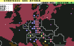 The game allows the player to request chemical and nuclear tactical strikes against the enemy. A chemical attack is automatically targeted at an enemy capital city, and will conclude with a readout announcing the outcome of the attack, such as civilian casualties. In order to launch a strategic nuclear attack, the player is given 30 seconds to call a dedicated 1-800 telephone number and obtain a special authorisation code from the automated answerphone message (the authorisation code was 'Midnight Sun'). [7][3][1][8] Once the authorisation code has been received, the player will be given three separate options on how to proceed. Standby mode will postpone the nuclear launch, whereas a strategic launch will involve one nuclear warhead targeting a city. The third option, known as "Fire-Plan", will issue a full-scale nuclear strike across Europe and may result in a nuclear holocaust, which will end the game.[3][1][6]