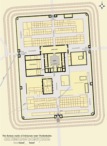 Theilenhofen is a municipality in the Weißenburg-Gunzenhausen district, in Bavaria, Germany. An important part of the local history is the Roman Castle Iciniacum, near the Limes Germanicus. This fortification and Roman village was erected around 100 AD and destroyed c. 260 AD by the Germanic people of the Alamannen. Today you can see only the Roman Military Bath in this area. It was first found in 1820.