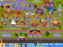 Starting with a free plot of land in the United Kingdom and few hundred thousand pounds, the player must build a profitable amusement park.[2] Money is spent on building rides, shops, and staff,[3] and earned through sale of entry tickets, merchandise, and refreshments.[4] Shops available include those selling foodstuff (such as ice creams) or soft drinks, and games such as coconut shies and arcades.[5] Their attributes can be customised, which may affect customers' behaviour: for example, affecting the flavour of foods (e.g. by altering the amount of sugar an ice cream contains) may affect customers' enticements to return.[6] Facilities such as toilets, and items that enhance the park's scenery (such as trees and fountains) can be purchased.[7] Over thirty attractions, ranging in complexity from the bouncy castle and tree house to more complicated and expensive rides such as the roller coaster and Ferris wheel are available. Also available as rides are shows (called 'acts') with themes such as clowns and mediaeval.[8] Certain rides, such as roller coasters, require a track to be laid out.[9] The ride complement varies between platforms: for example, the PlayStation version is missing the mediaeval and dolphin shows.[10] Rides require regular maintenance: if neglected for too long they will explode.[11] Depending on the platform, it is possible to tour the park or the rides.[12][13]