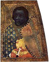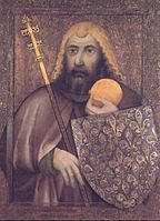 Master Theodoric, in Latin Magister Theodoricus (* before 1328? - before March 8, 1381, Prague, active - ca. 1360–1380) is best documented Bohemian Gothic painter. He was favourite court painter of Charles IV, Holy Roman Emperor.[1] and the first Bohemian painter whose name can be linked to a body of work.[2] Theodoric is considered the chief representative of the phase of International Gothic known as "the Soft style". His masterpiece is the Chapel of the Holy Cross at Charles' newly completed Karlštejn Castle near Prague, containing a large series of slightly over-lifesize half-length panel portraits of saints and other notable figures on a gold ground. The whole decoration of the Chapel was commissioned in 1359 and completed over a number of years. Decoration of the Chapel of the Holy Cross was unique and unprecedented north of Alps.[3] Theodoric´s oeuvre is not comparable to anything in European art after the mid-14th century (1360th).[4]