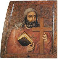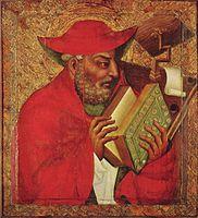 Study of the typology of the heads showed that the shape of the head and the details of the face, i.e. eyes, nose, are completely identical in a number of cases, as though they originated through tracing.[22][23] However, some of the faces of saints captivate the viewer´s attention with their prominent, seemingly individualized features and psychologized expressions, which anticipate portrait painting of 15th century. The portrait of St Luke the Evangelist might even be the autoportrait of Theodoric himself.[24]