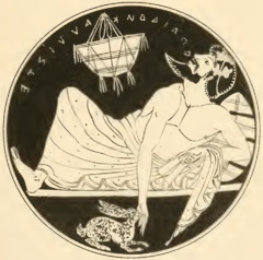 Odyssey 5.476–83 - ^ A woman's voice for example here: "My friends betray me and refuse to give me anything when men appear. Well, of my own accord I'll go out at evening and return at dawn, when the roosters awake and crow"—lines 861–64 translated by Douglas Gerber, Loeb page 299