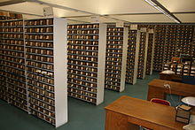 The offices of the TLL contain copies of all surviving Latin texts from 600 CE and earlier.[1] The stacks contain boxes that collectively contain about 10 million slips on which is "every surviving piece of writing from the classical period", sorted into usage categories by word.[1] For example, there are about 90,000 slips for the word 'et' and 50,000 for the word 'non'.[1] These are used as source material to create entries for each word in the thesaurus.