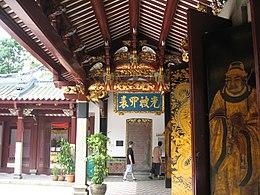 Thian Hock Keng[1] (Chinese: 天福宮; pinyin: Tiānfú Gōng; Pe̍h-ōe-jī: Thian-hok-kiong or the Tianfu Temple, literally "Palace of Heavenly Happiness"),[2] is a temple built for the worship of Mazu, a Chinese sea goddess, located in Singapore. It is the oldest and most important temple of the Hokkien (Hoklo) people in the country. Another shrine at the back is Buddhist dedicated to Guanyin, the Mahayana Buddhist bodhisattva of mercy.