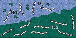 - ^ Schulz HN, de Beer D (November 2002), "Uptake Rates of Oxygen and Sulfide Measured with Individual Thiomargarita namibiensis Cells by Using Microelectrodes", Applied and Environmental Microbiology, 68 (11): 5746–9, CiteSeerX 10.1.1.335.4467, doi:10.1128/AEM.68.11.5746-5749.2002, PMC 129903, PMID 12406774.