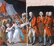 Among the preliminary terms that Cornwallis insisted on was that Tipu surrender two of his sons as hostages as a guarantee for his execution of the agreed terms. On 26 February his two young sons were formally delivered to Cornwallis amid great ceremony and gun salutes by both sides. Cornwallis, who was not interested in significantly extending the company's territory, or in turning most of Mysore over to the Mahrattas and Hyderabad, negotiated a division of one half of Mysorean territory, to be divided by the allies, in which the company's acquisition would improve its defences. He later wrote, "If we had taken Seringapatam and killed Tippoo, [...] we must either have given that capital to the Marattas (a dangerous boon) or have set up some miserable pageant of our own, to be supported by the Company's troops and treasures, and to be plundered by its servants."[43] The territories taken deprived Mysore of much of its coastline; Mysore was also obligated to pay some of the allied war costs.
