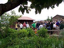 The location of the park is where, on July 24, 1847, Brigham Young first saw the Salt Lake Valley, which would soon become the new home for the Mormon pioneers. Members of The Church of Jesus Christ of Latter-day Saints believe Young had a vision shortly after they were exiled from Nauvoo, Illinois. In the vision, he saw the place where the Latter-day Saints would settle and "make the desert blossom like a rose" and where they would build their State of Deseret. As the account goes, Young was very sick with Rocky Mountain spotted fever and was riding in the back of a wagon. After exiting Emigration Canyon and cresting a small hill, he asked to look out of the wagon. Those with him opened the canvas cover and propped him up so he could see the empty desert valley below. He then proclaimed, "It is enough. This is the right place. Drive on." The words, "this is the place," were soon heard throughout the wagon train as the Mormon pioneers descended into the valley, their long journey having come to an end. The statement was first attributed to Young by Wilford Woodruff more than thirty years after the pioneer advent.[1]