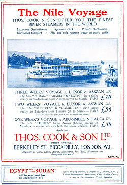 By 1888, the company had established offices around the world, including three in Australia and one in Auckland, New Zealand, and in 1890, the company sold over 3.25 million tickets.[4] John Mason Cook promoted, and even led, excursions to, for example, the Middle East where he was described as "the second-greatest man in Egypt".[4] However, while arranging for the German Emperor Wilhelm II to visit Palestine in 1898, he contracted dysentery and died the following year.