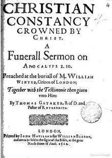 This article incorporates text from a publication now in the public domain: Chisholm, Hugh, ed. (1911). "Gataker, Thomas". Encyclopædia Britannica. 11 (11th ed.). Cambridge University Press. p. 527.
