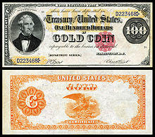 Benton was an unflagging advocate for "hard money", that is gold coin (specie) or bullion as money—as opposed to paper money "backed" by gold as in a "gold standard". "Soft" (i.e. paper or credit) currency, in his opinion, favored rich urban Easterners at the expense of the small farmers and tradespeople of the West. He proposed a law requiring payment for federal land in hard currency only, which was defeated in Congress but later enshrined in an executive order, the Specie Circular, by Jackson (1836). His position on currency earned him the nickname Old Bullion.[12]