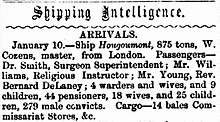 In October 1867, he was put on board the Hougoumont, a convict ship bound for Western Australia. The Hougoumont departed Portland on 12 October 1867 and arrived at Fremantle, Western Australia on 9 January 1868.