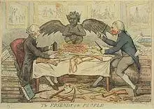 Wealthy men, such as Robert Morris, John Jay and powerful merchant bankers, were leaders of the Continental Congress and defended holding public positions while at the same time profiting off their own personal financial dealings with governments.[49] Amongst Paine's criticisms, he had written in the Pennsylvania Packet that France had " prefaced [their] alliance by an early and generous friendship," referring to aid that had been provided to American colonies prior to the recognition of the Franco-American treaties. This was alleged to be effectively an embarrassment to France, which potentially could have jeopardized the alliance. John Jay, the President of the Congress, who had been a fervent supporter of Deane, immediately spoke out against Paine's comments. The controversy eventually became public, and Paine was then denounced as unpatriotic for criticizing an American revolutionary. He was even physically assaulted twice in the street by Deane supporters. This much-added stress took a large toll on Paine, who was generally of a sensitive character and he resigned as secretary to the Committee of Foreign Affairs in 1779.[50] Paine left the Committee without even having enough money to buy food for himself.[51]